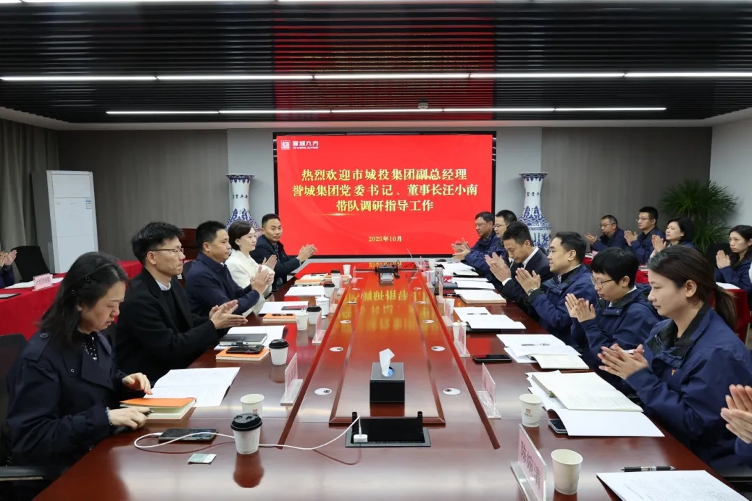 2025年10月23日,市城投集团公司副总经理,誉城集团公司党委书记、董事长汪小南带队到誉城九方公司实地调研指导工作。誉城集团总会计师徐菲,综合办公室、建设管理部、企业发展部有关同志陪同调研。