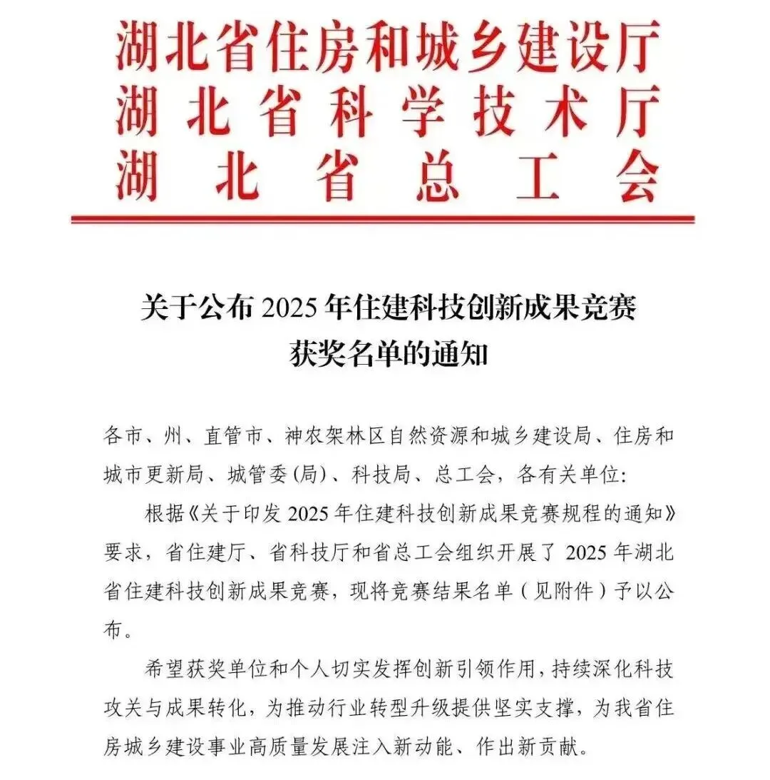 近日,由湖北省住房和城乡建设厅、湖北省科学技术厅、湖北省总工会三部门联合主办的2025年住建科技创新成果竞赛落幕。誉城九方公司“武商仓储会员店(商业服务业设施用地)EPC项目”从众多参赛案例中脱颖而出,荣获省市建工组竞赛三等奖。